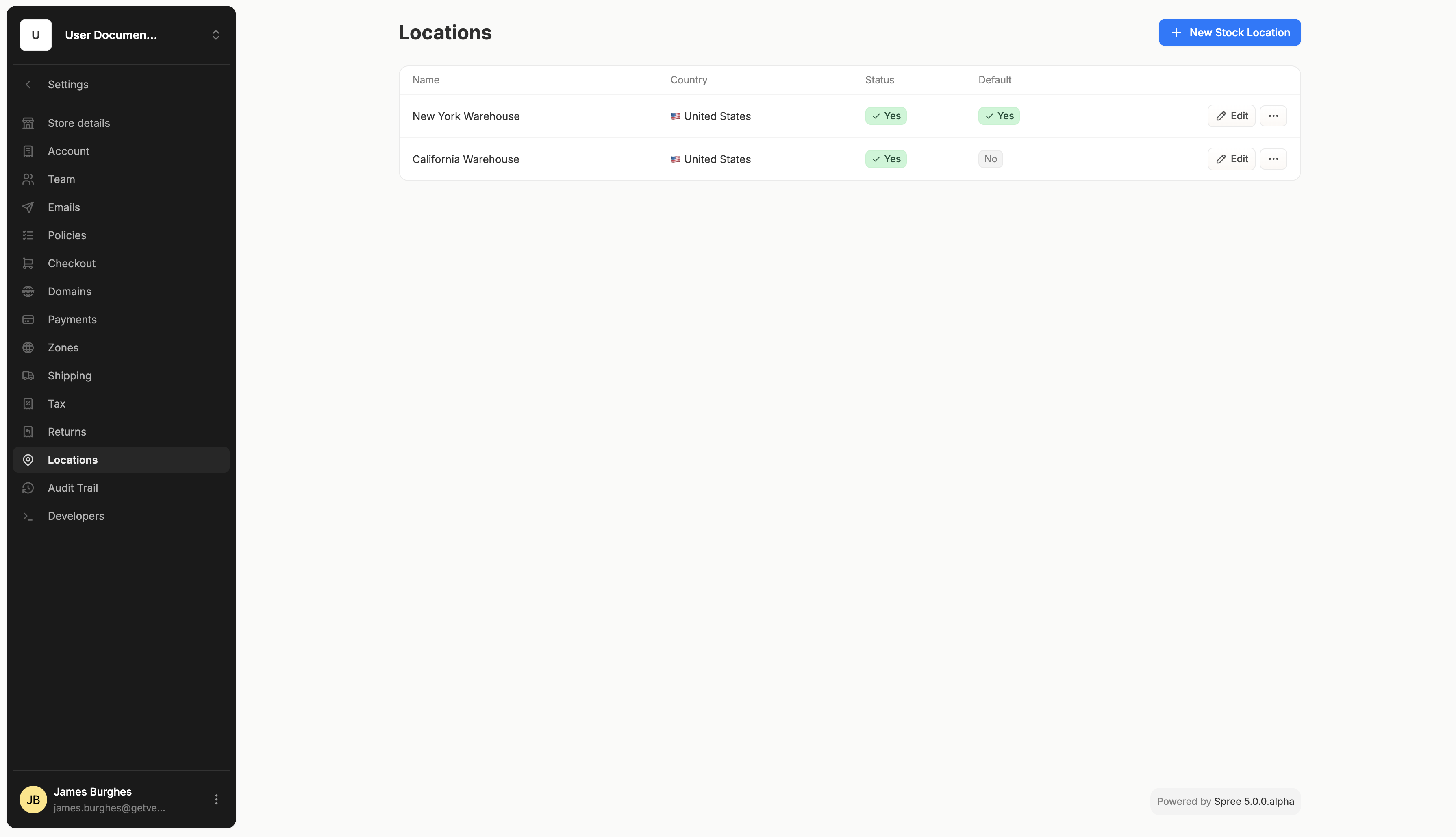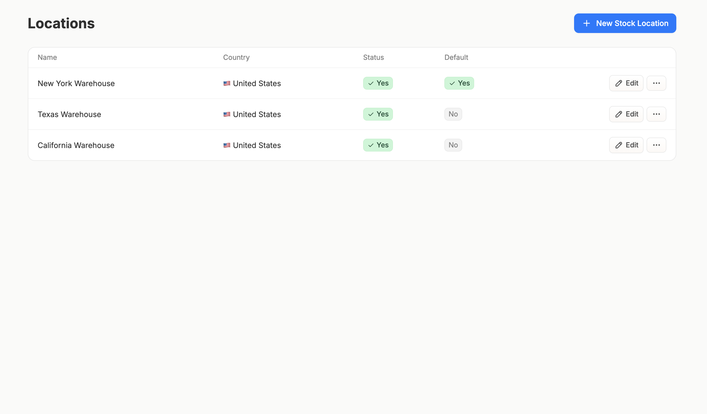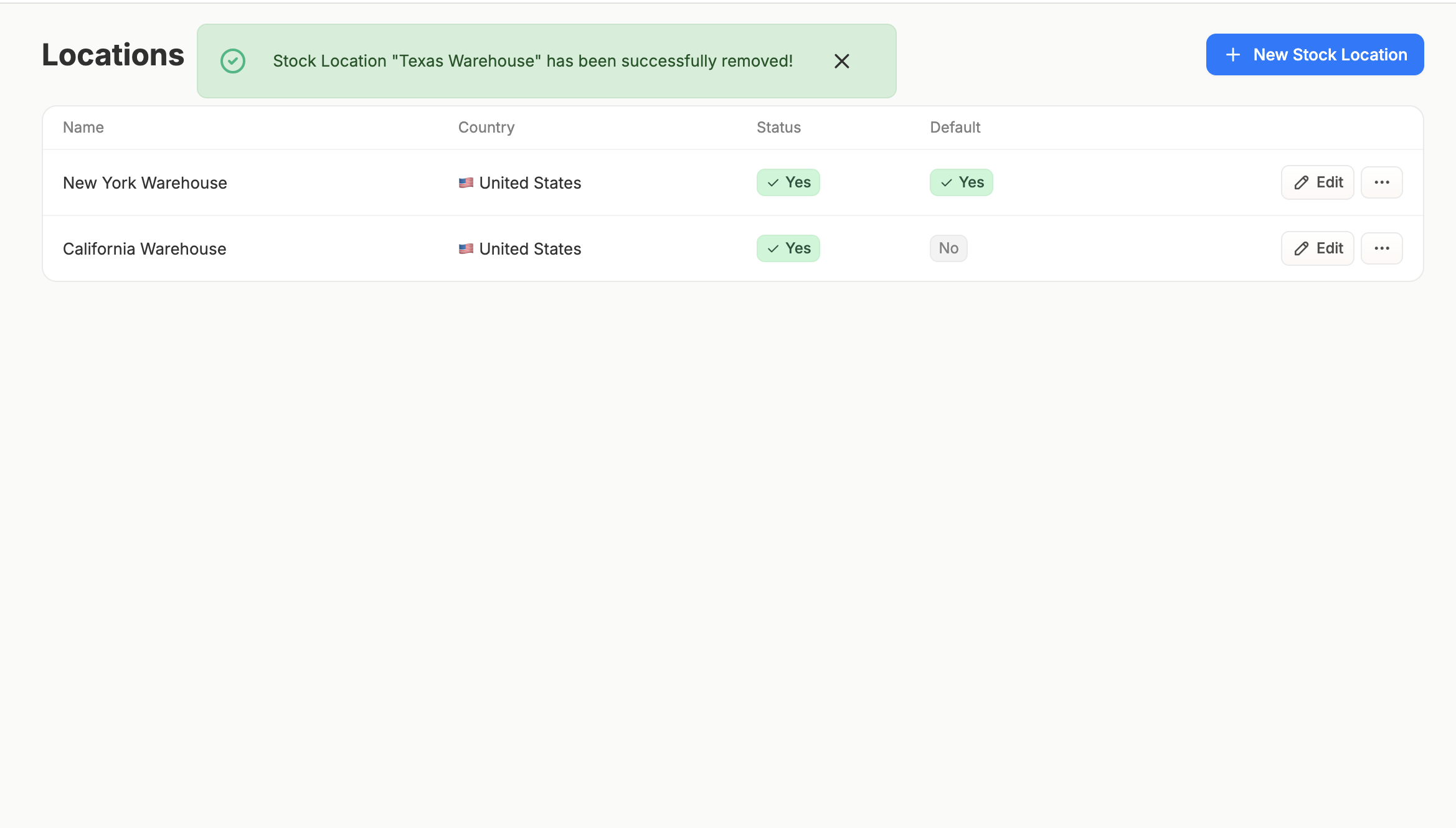 To edit a Location, simply click the ‘Edit’ button on the right side of the Location’s row, and update the information as necessary.Set a Default Location