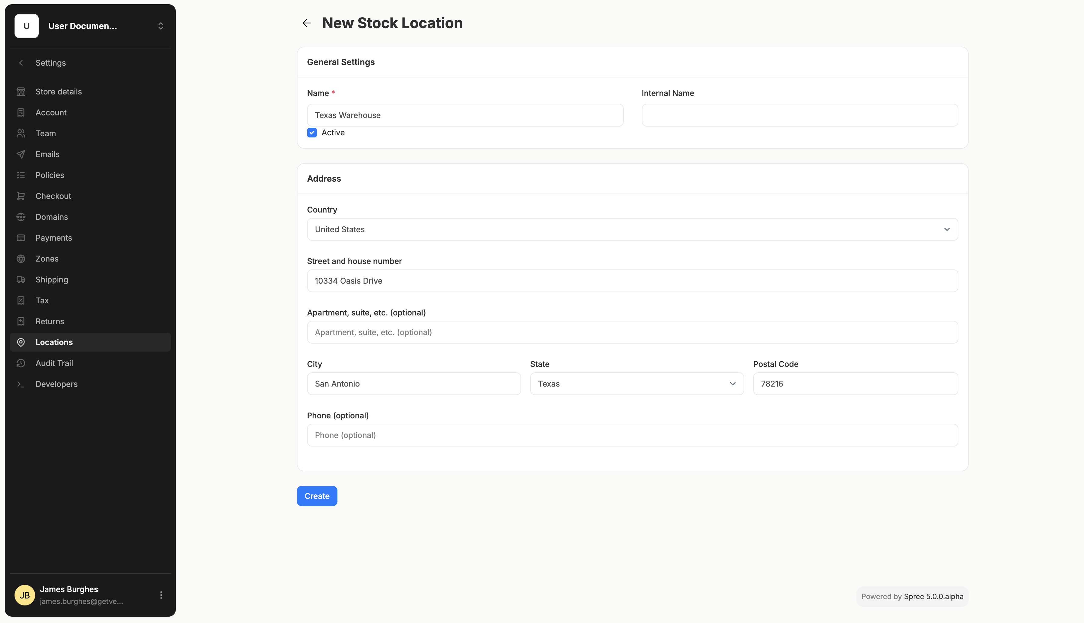 To add a new Location, click on the ‘New Stock Location’ button in the top right corner. This will open the Location creation page.
