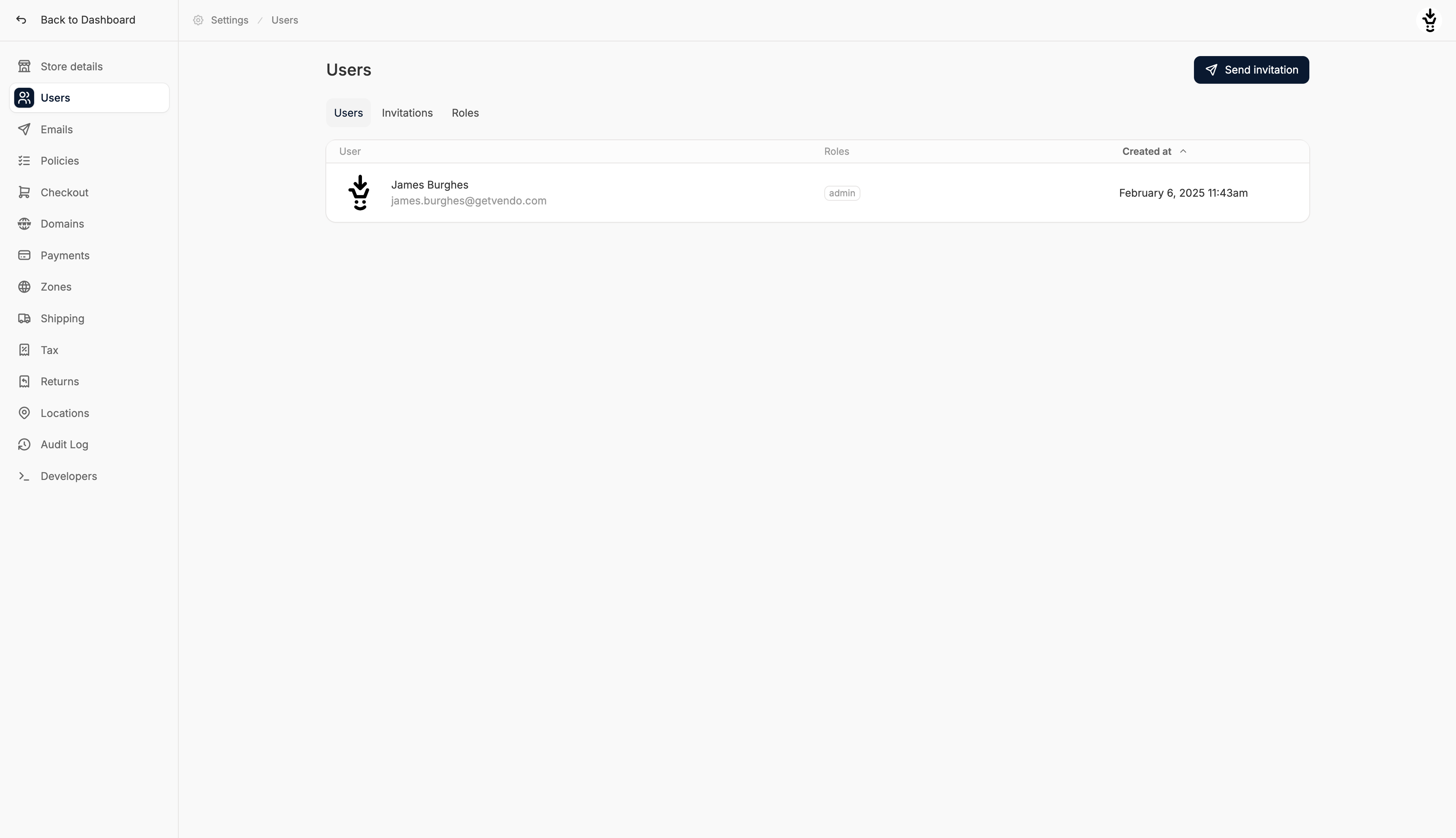 Effectively managing user access to your store’s backend is essential for operational security and team collaboration. The Users settings section allows you to view active users, track invitations, and (eventually) create roles to define permissions.