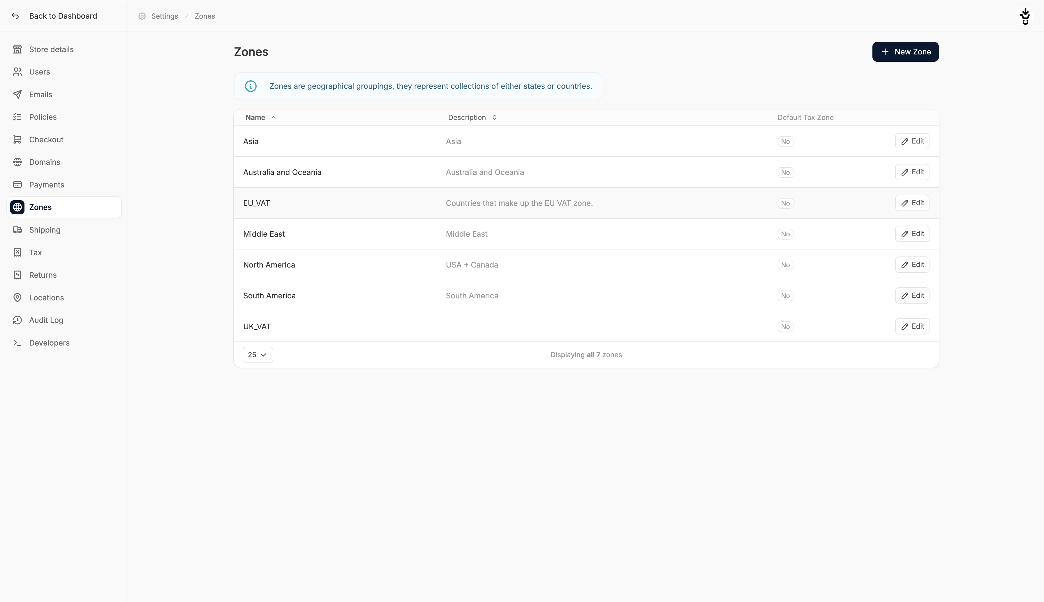 - Toggle default tax zone as needed