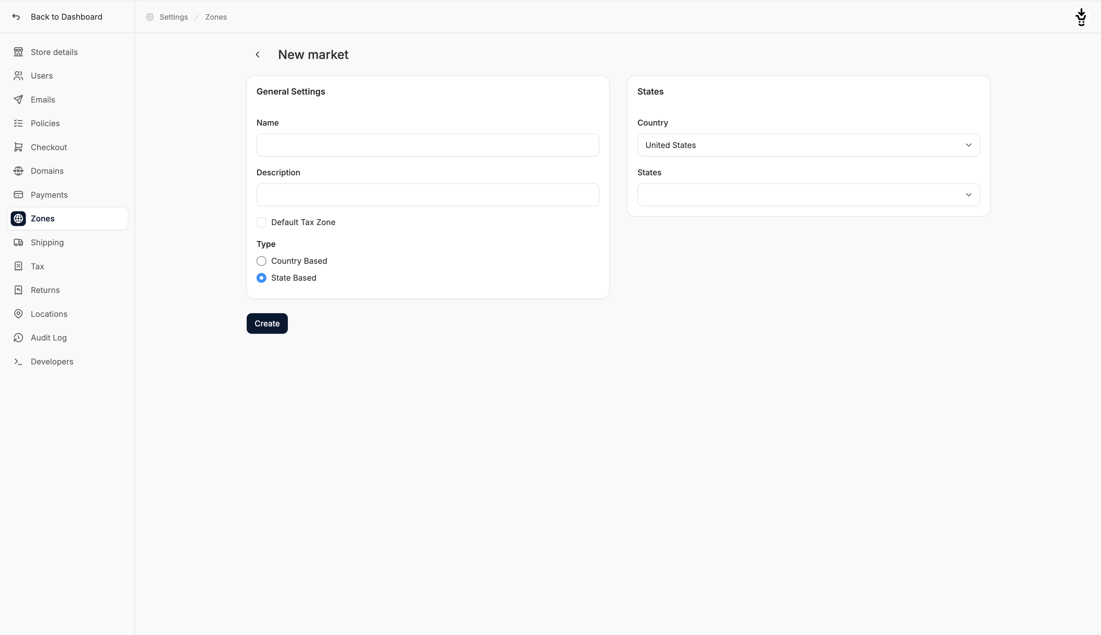 - Use state-based zones when you need tax/shipping rules for specific U.S. states.