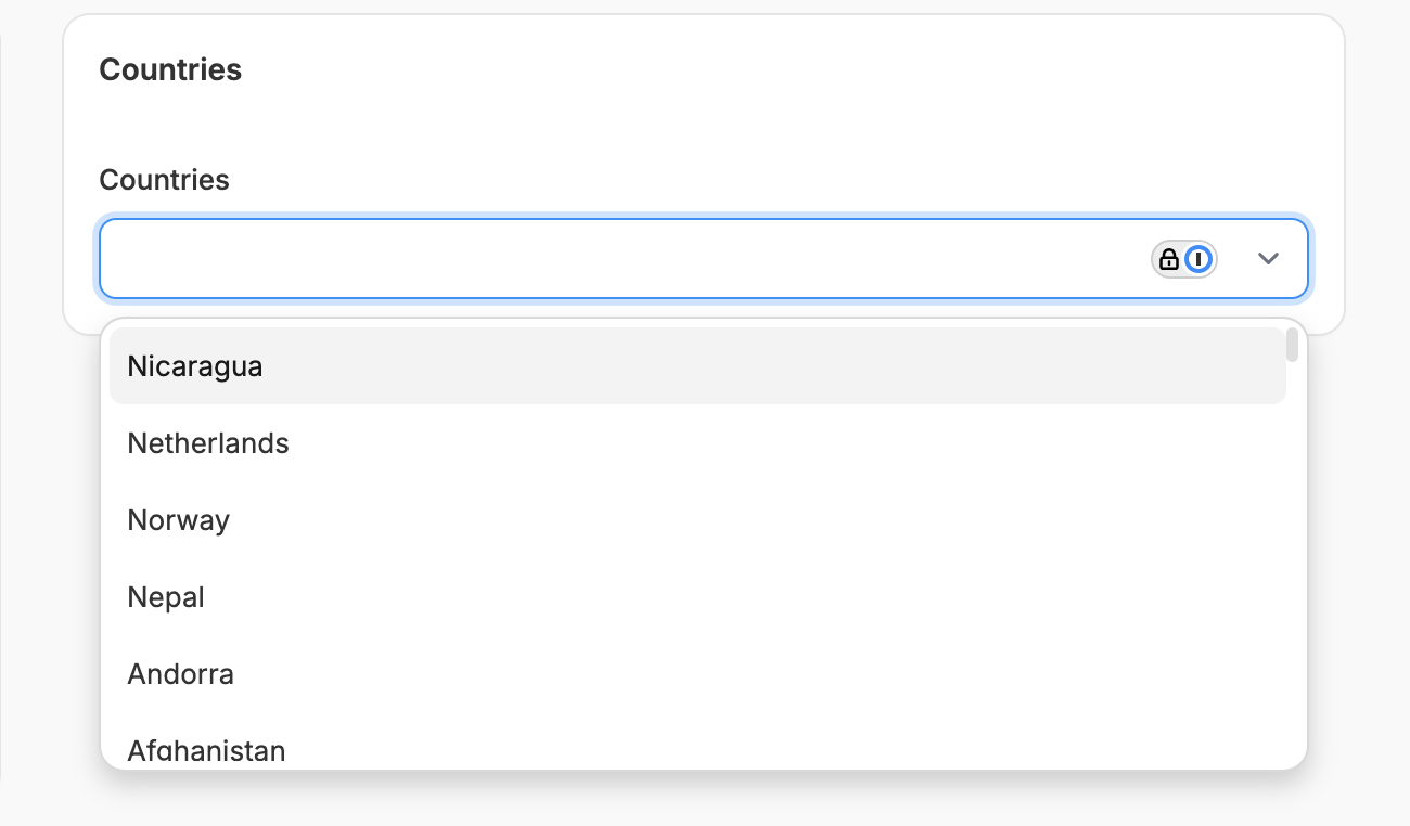 This section differs based on the chosen Type:Country-Based