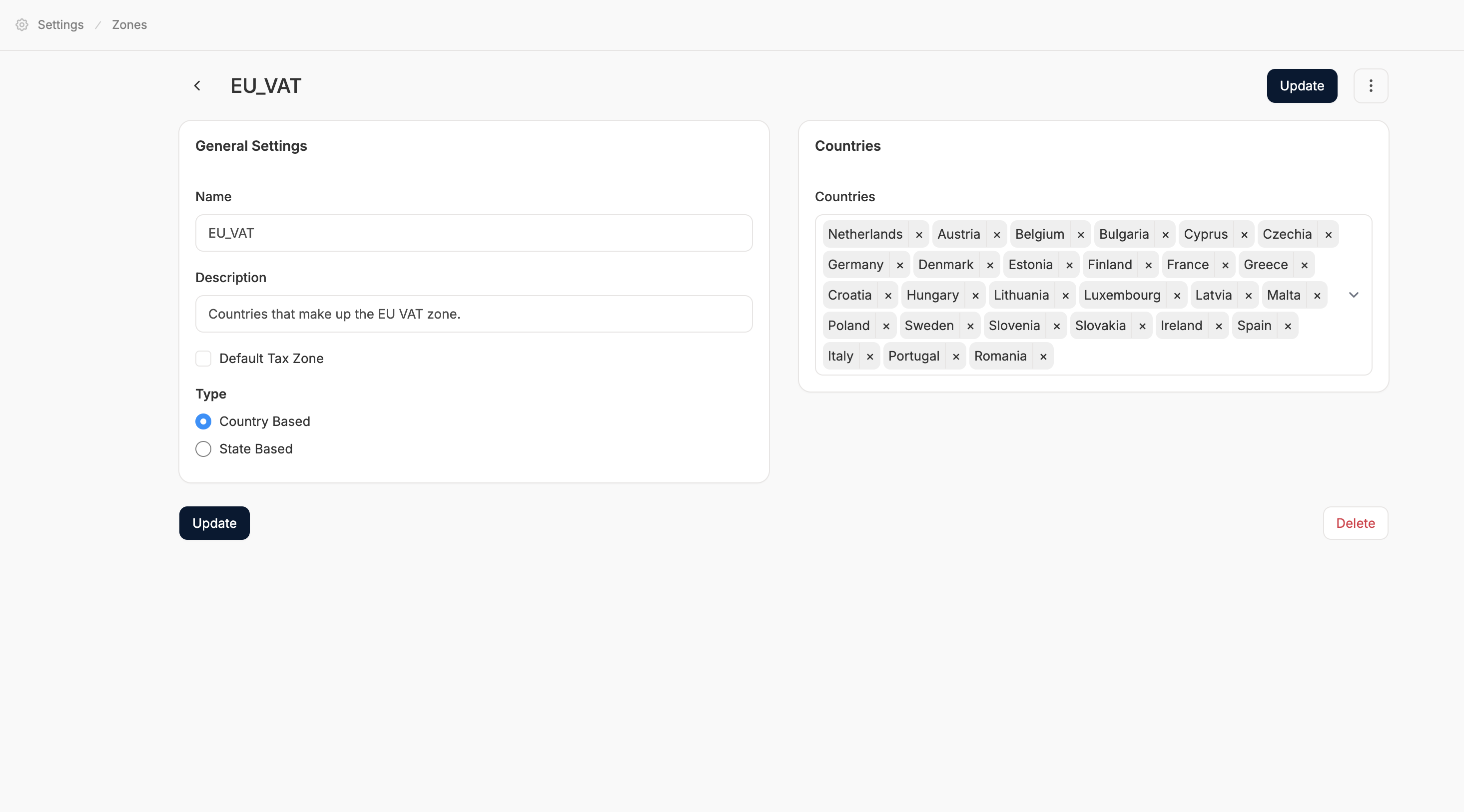 - Description (e.g, Countries that make up the EU VAT zone)