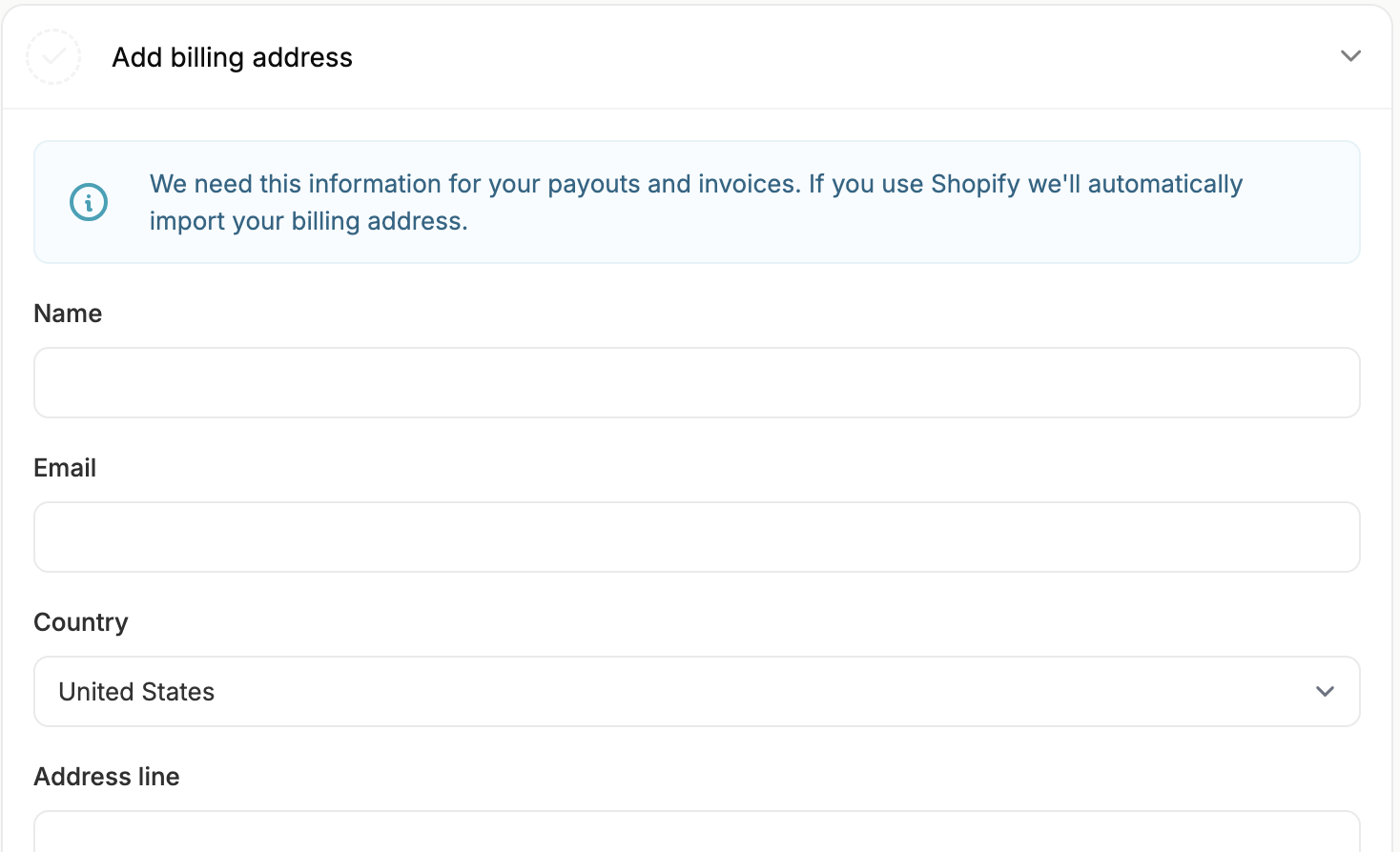 If you use the Shopify store connector, your billing address will be automatically imported.