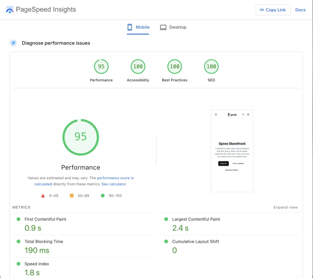 Spree Commerce’s open source Next.js eCommerce storefront is a production-ready starter for teams building headless commerce on Spree Commerce. Every page a working store needs is in the box, from the product catalog to a one-page checkout, and the code is free to fork so teams ship, own, and customize their storefront without vendor lock-in.