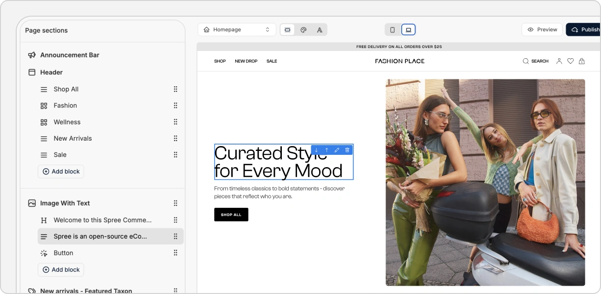 Spree is your ready-to-use multi-tenant starter that speeds up the delivery of your custom functionality and integrations.
